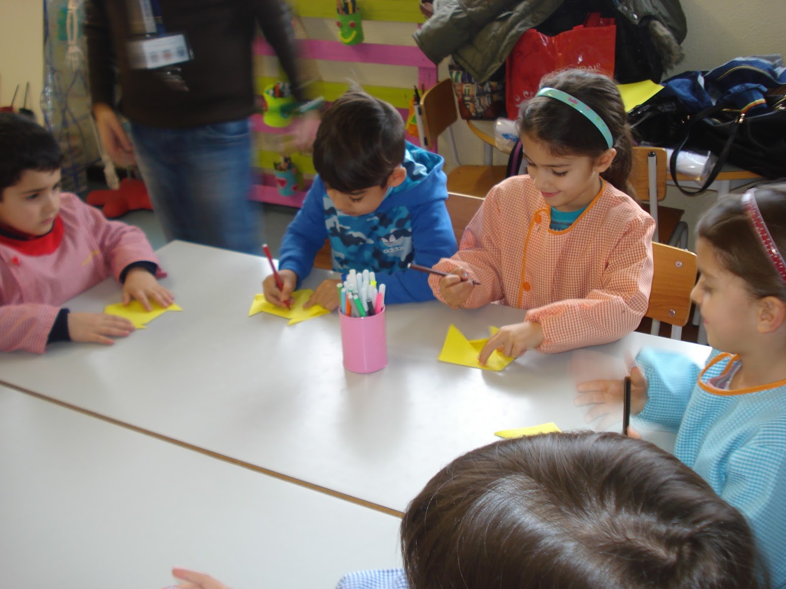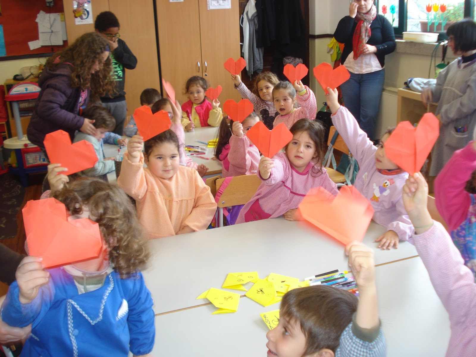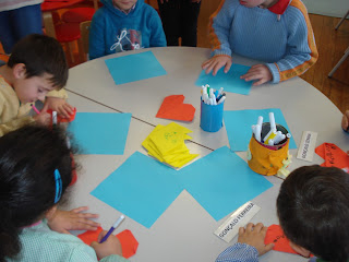 Na sala da Educadora Gladys...muito se dobrou!!!!